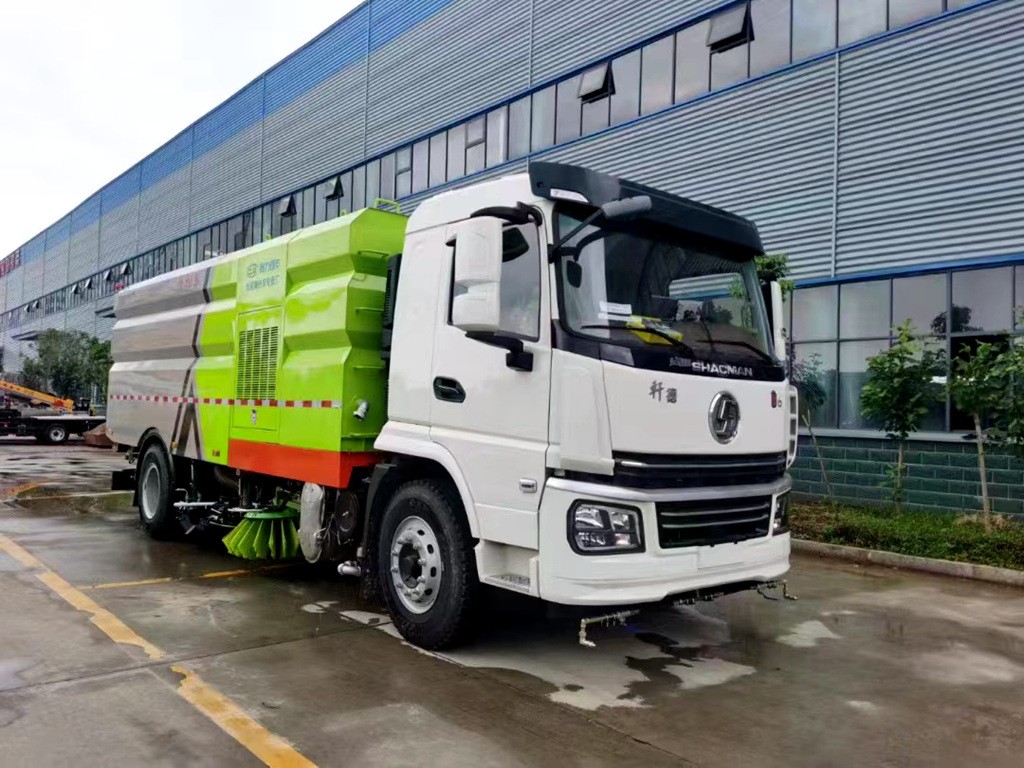 上装:中置2扫盘,中置吸盘。力沃液压摆线马达,洛阳北玻/长沙离心风机,德国进口高压水泵(前冲/侧喷/中喷/后喷雾/侧冲洗车水枪/垃圾箱自洁装置),万向高压路沿清洗,豪威低压水泵,新西山电子隔膜水泵,不锈钢水箱及不锈钢垃圾箱。不锈钢高压管路,西门子控制开关,尾部LED箭头灯,机油、垃圾箱、水箱均带防溢或低水位语音报警装置。倒车及洗扫状态室内监视器,20m高压冲洗卷盘。(选装配置:以上车型可以加装雪铲、雪滚、路面冲洗装置)